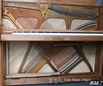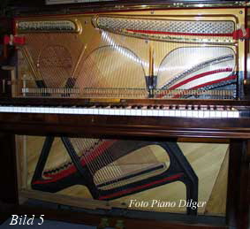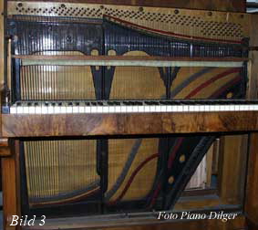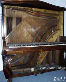 solidere Verbindung zwischen Rahmen und Klaviergehäuse zu ermöglichen. Bemerkenswert ist die enorme Bauhöhe vieler Instrumente jener Zeit; man versuchte auch damals schon, trotz senkrechter