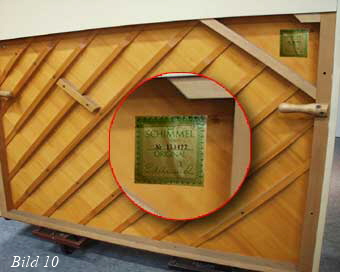 Stimmstockholz die komplette Zugkraft auf den Rahmen übertragen. Der einzige Vorteil dieser offen sichtbaren Stimmstöcke liegt für den potentiellen Käufer darin, dass eventuelle Risse im Stimmstock gut sichtbar sind (Bild 8).