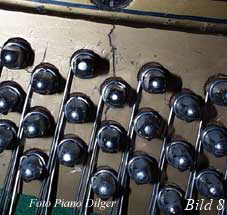 einigen Modellen völlig auf eine stabile Raste verzichten (Foto 10). Aber -wie schon erwähnt- gibt die Raste dem gesamten Klavier Stabilität und verbindet in idealer